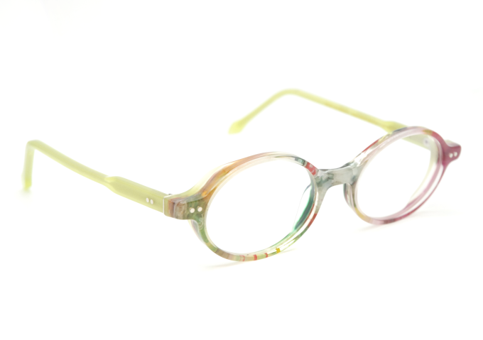 ハンドメイドで作られた絵画のようなに美しいメガネです。