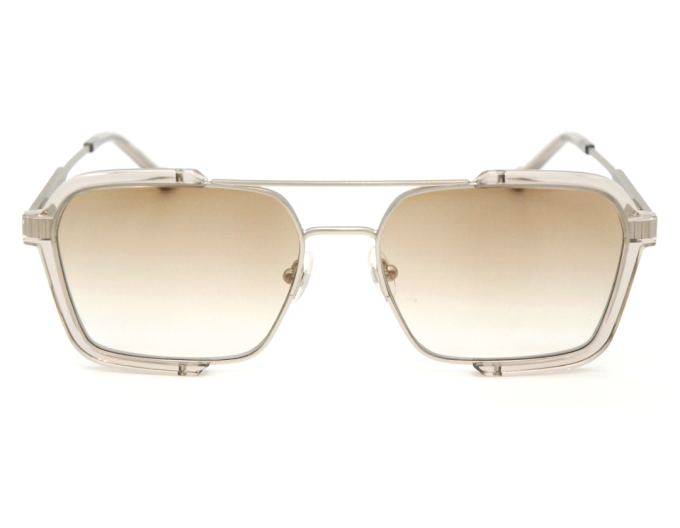 透き通った柔らかいカラーのパーツと組み合わされた独創的なデザインのダブルブリッジです。